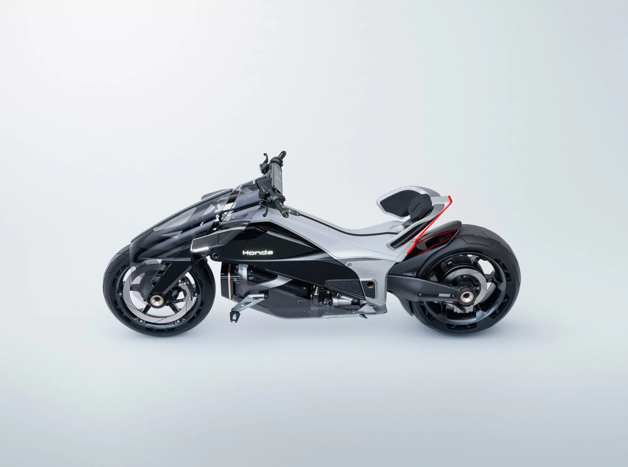 Rezultatul este o motocicletă care arată și se simte diferit de orice altceva. Designul pornește de la tema Honda pentru motocicletele electrice, Precision of Intrinsic Design. Pentru Outlier, Tsutsumi-san și echipa sa au mers mai departe, accentuând direcții introduse anterior pe WN7 și definind trei elemente-cheie noi: Gliding, Ecstasy și Low.