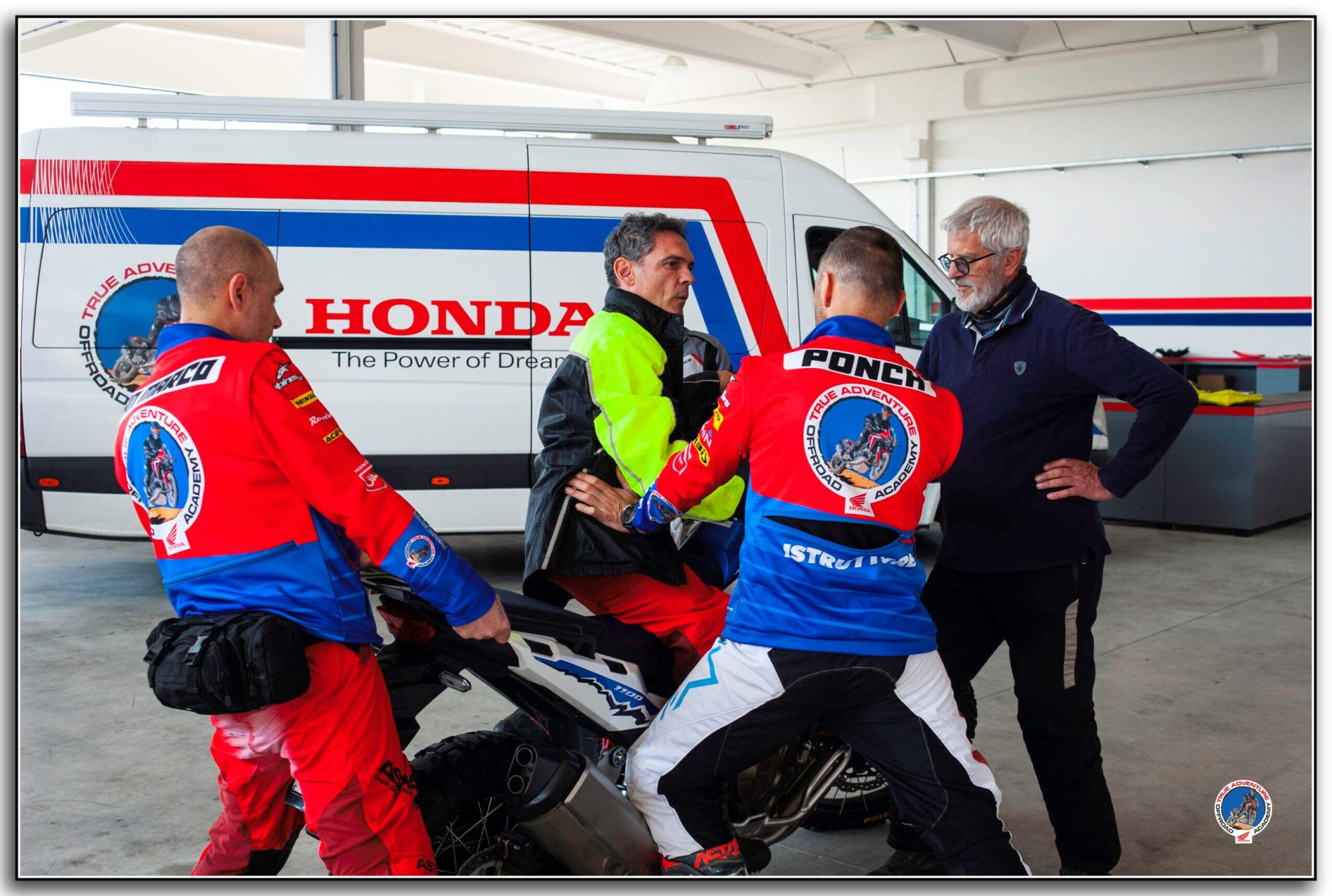 Un aspect comun tuturor celor trei centre este lipsa dorinței de a glorifica trecutul competițional al fondatorilor. Dimpotrivă, fiecare a avut un moment de claritate: mulți rideri au nevoie de sprijin real pentru a dobândi abilitățile necesare off-road-ului autentic. Frétigné, campion în mai multe discipline (de cinci ori campion de Enduro, de șase ori consecutiv câștigător Trèfle Lozérien AMV și campion al Rally of Morocco 2008), povestește cât de surprins a fost de numărul riderilor care aveau nevoie să învețe bazele controlului unei motociclete adventure mari odată ce asfaltul se termina. „Aveam toată această experiență acumulată, motocross, nisip, rally raid”, explică el. „Centrul a devenit modul corect de a o împărtăși, pe teren real, cu oameni reali.”
