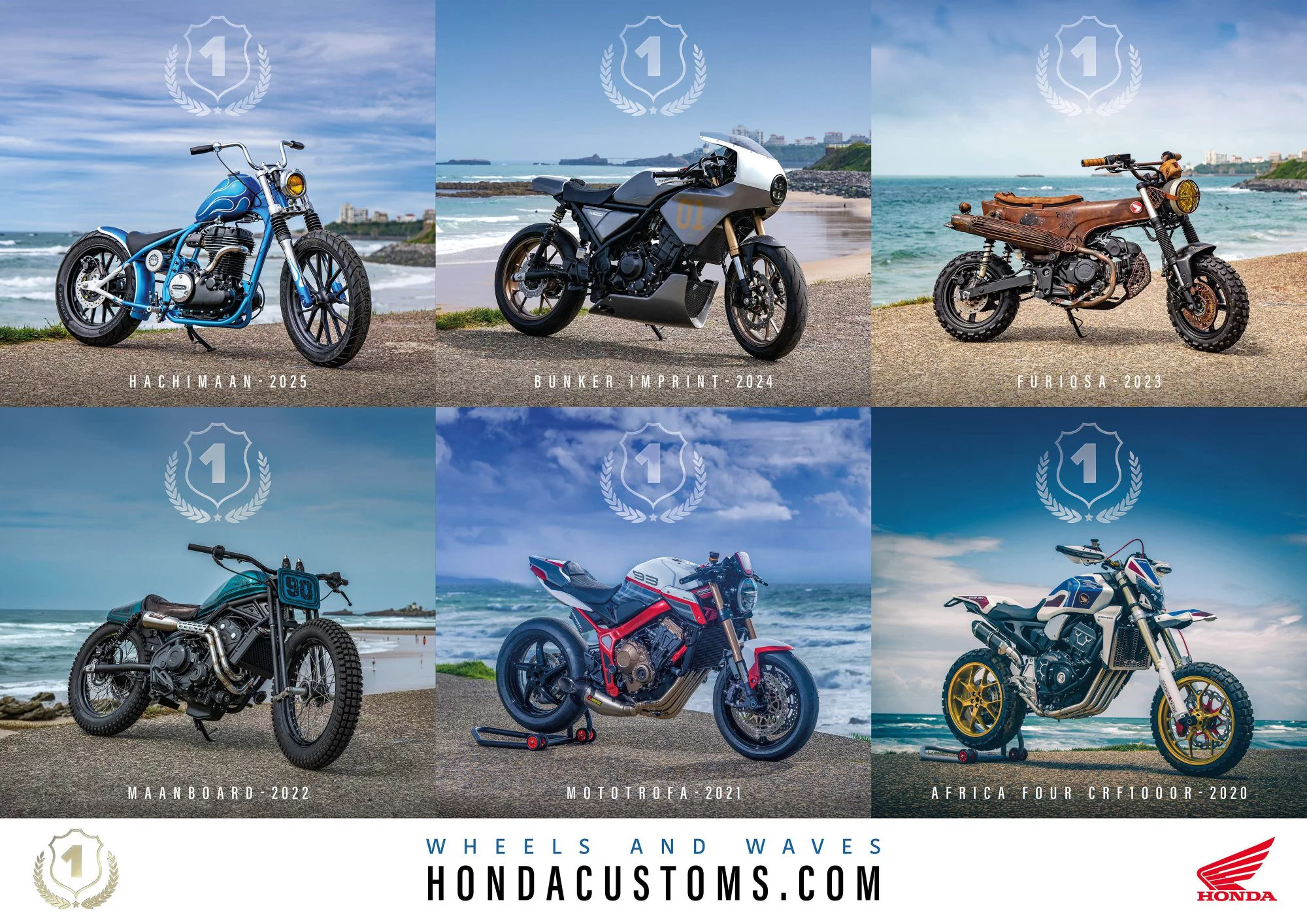 Câștigătorul ediției 2025 a fost „Hachimaan”, o reinterpretare radicală în stil Japanese-Bobber a GB350S, creată de atelierul italian Motocicli Audaci (MAAN). Cu peste 9.500 de voturi, Hachimaan a cucerit publicul prin designul spectaculos și atenția la detalii, aducând echipei italiene a doua victorie Honda Customs, după succesul din 2022 cu modelul Maanboard CMX500 Rebel.