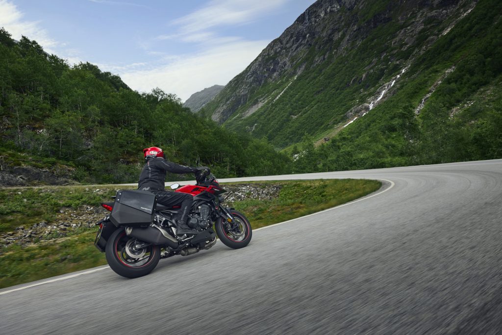 Accelerația electronică permite o dozare fină a puterii, cu moduri de condus preconfigurate care adaptează răspunsul motorului și comportamentul motocicletei în funcție de stilul și condițiile de drum.