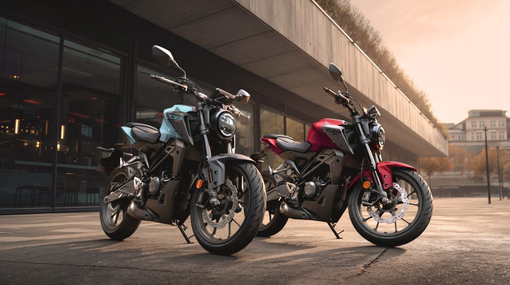 Ca parte a familiei Neo Sports Café, Honda CB125R impresionează prin designul său compact și rafinat. Farul LED circular, cadrul tubular din oțel și ecranul TFT color de 5” îi conturează personalitatea distinctă, iar motorul DOHC de 125 cm³ și suspensia Showa SFF-BP asigură performanțe precise și o experiență de condus fluidă în orice condiții.
