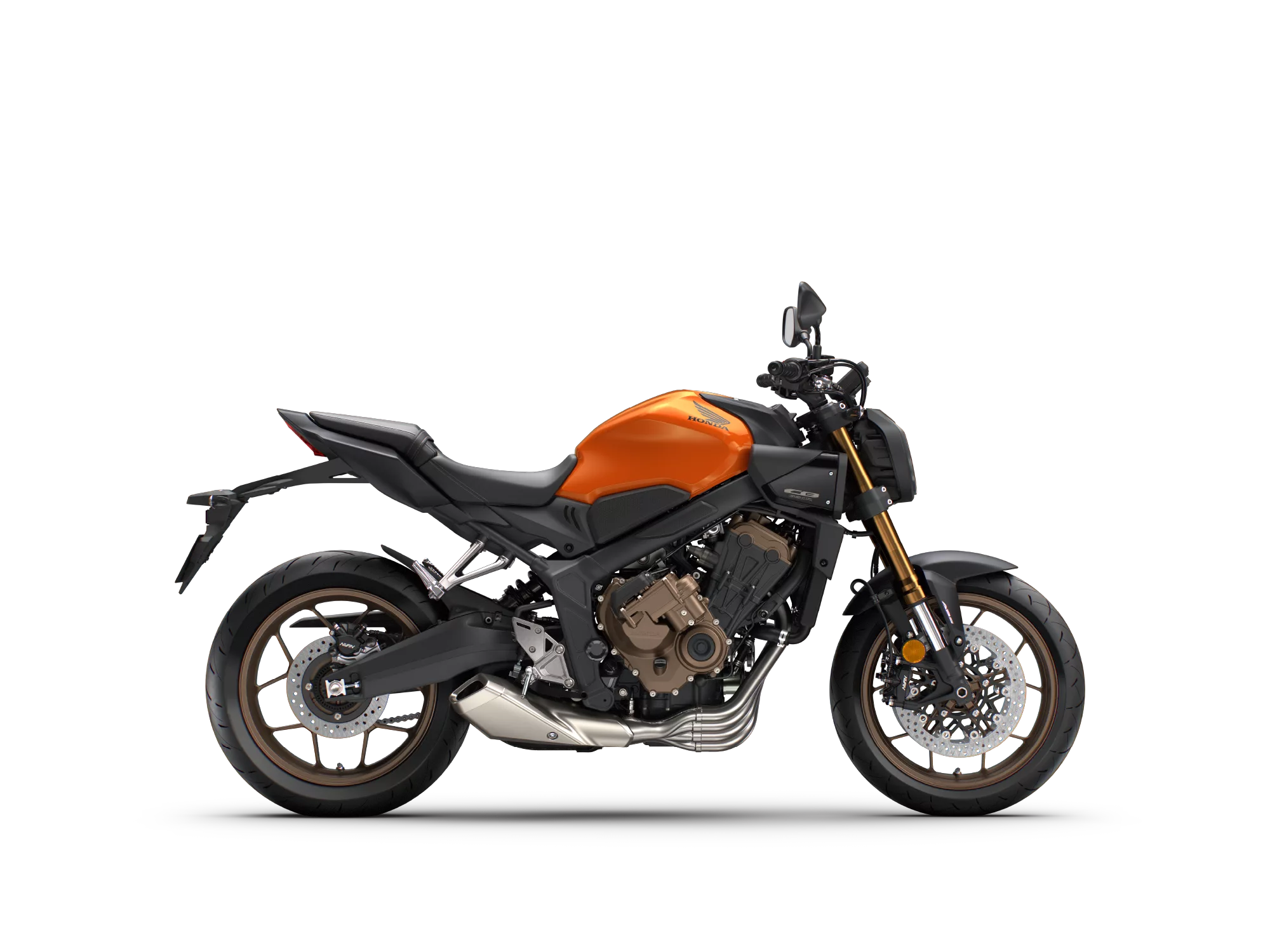 Cu o aliură compactă şi impunătoare, noul CB650R îmbină performanţele distinctive Street Fighter cu design-ul retro-minimalist expus de tip Neo Sports Café. Cele 4 ţevi de evacuare curg lin de-a lungul motocicletei și emană răcnetul pătrunzător al celor 95.2 CP dezvoltat de motorul DOHC 16-valve pe 4 cilindri.
