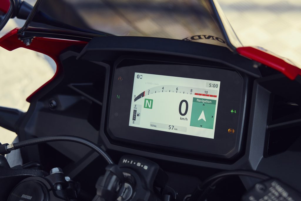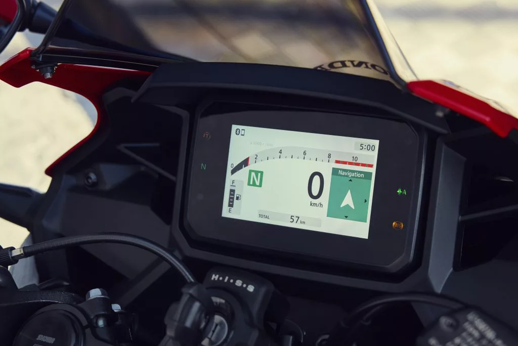 Noul CBR500R este iluminat full-LED pentru un aspect contemporan premium, un consum optim de energie și o vizibilitate sporită. Furca și suspensiile sunt ambele ajustabile pentru un maxim de confort, iar în cazul unei frânări neașteptate, semnalele automate la frânarea de urgență vă vin în asistență. Nu în ultimul rând, display-ul TFT de 5 inch este intuitiv și afișează în linia vizuală toate informațiile de care ai nevoie, inclusiv indicator de viteză și rpm, nivel de combustibil, consum și treaptă.