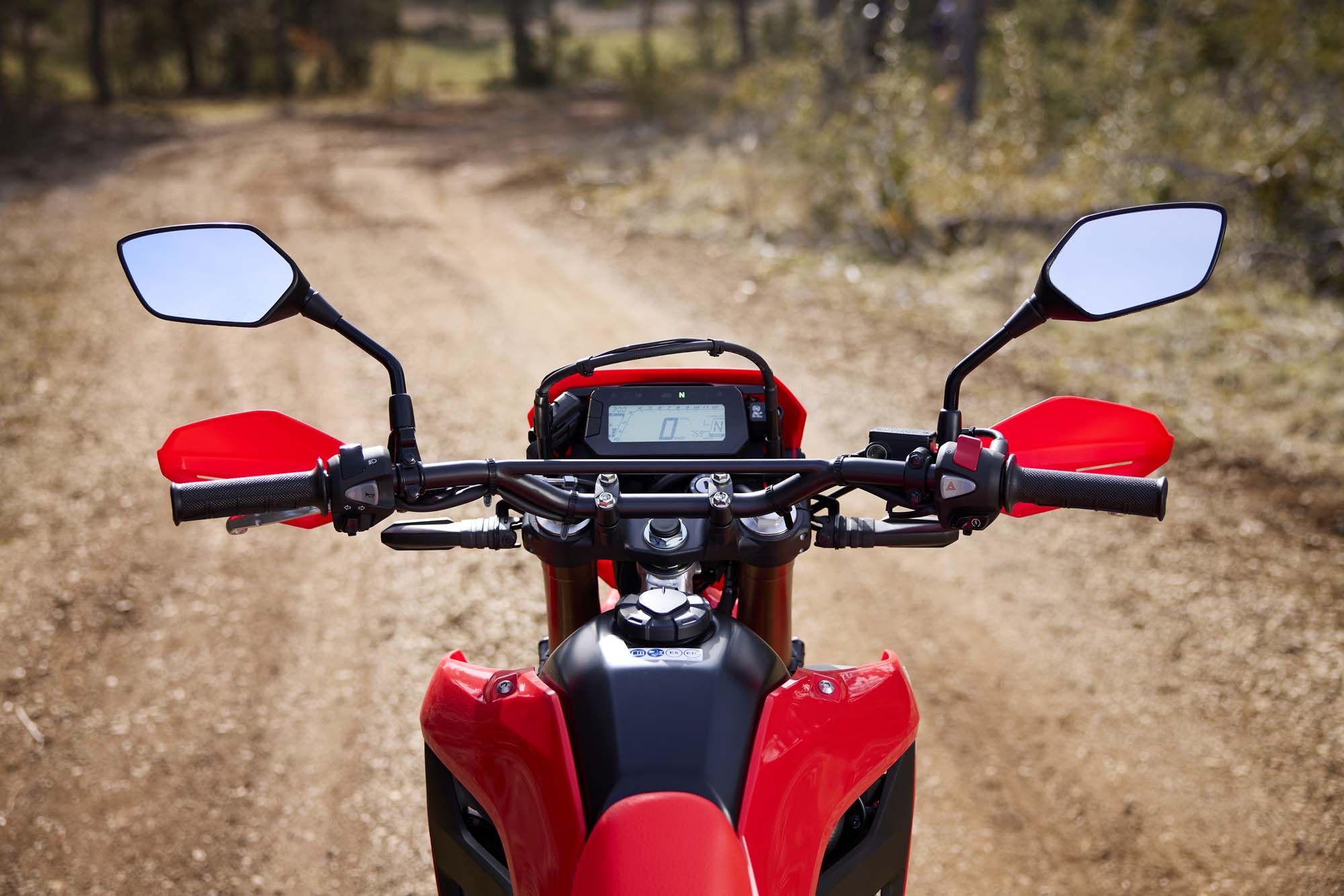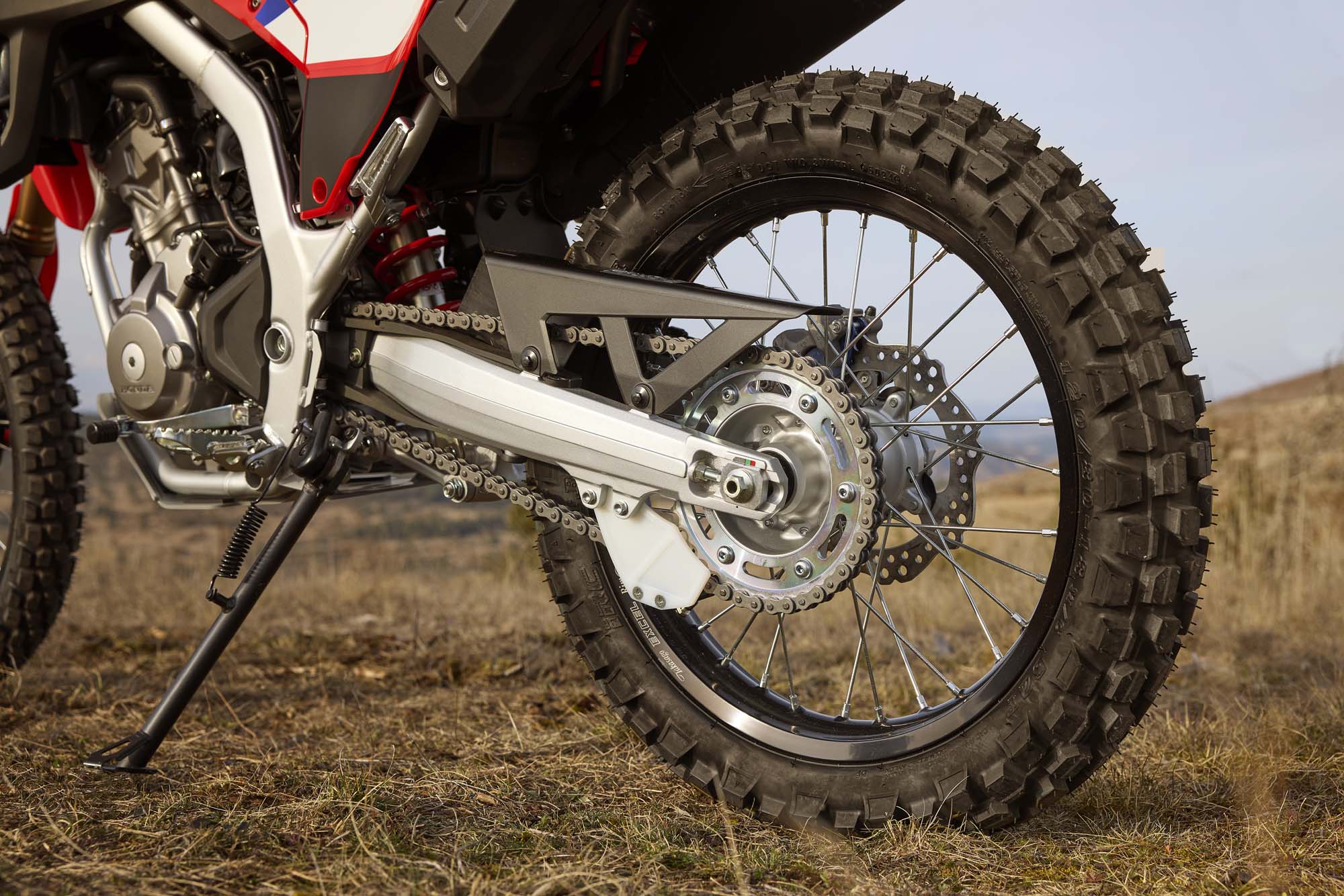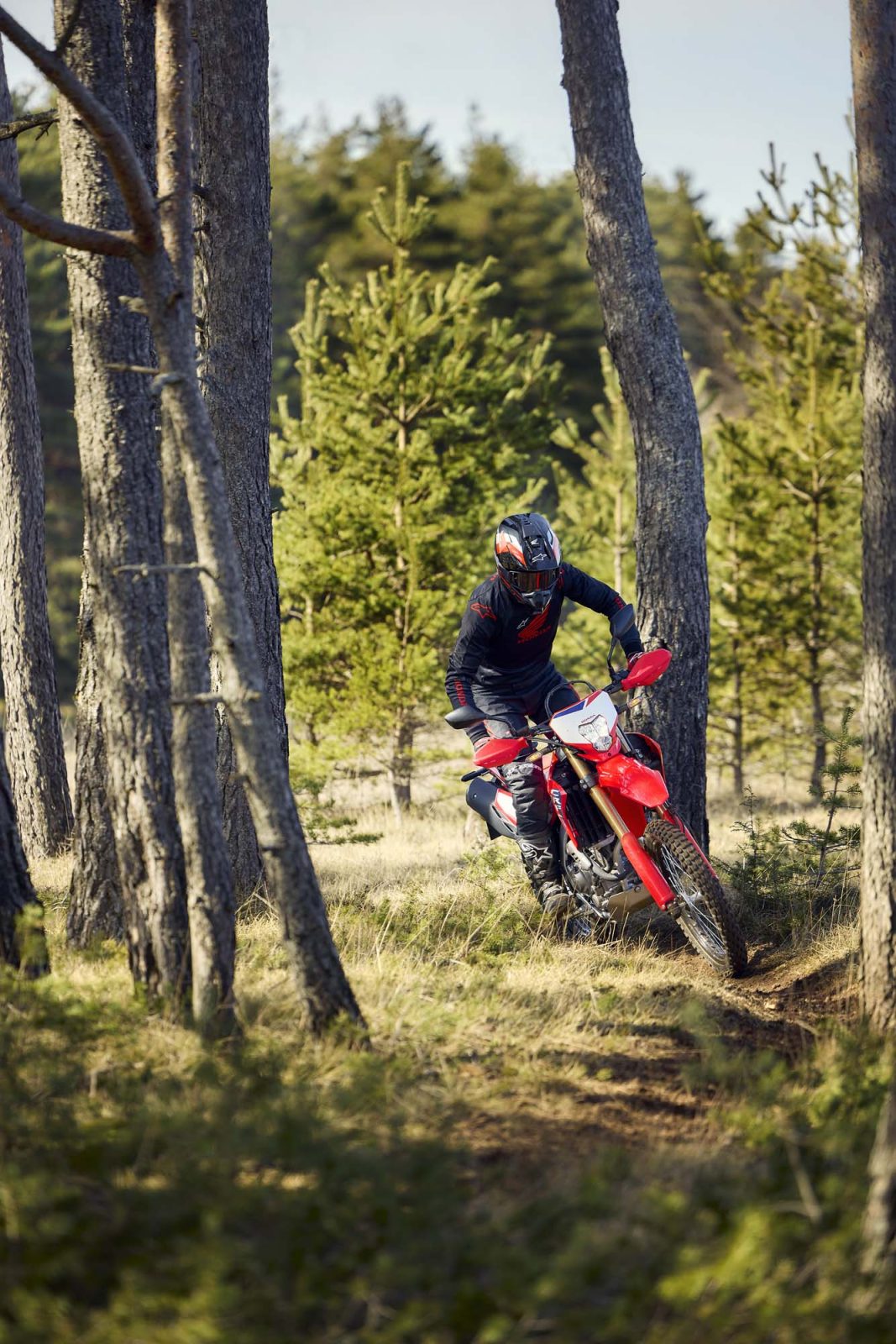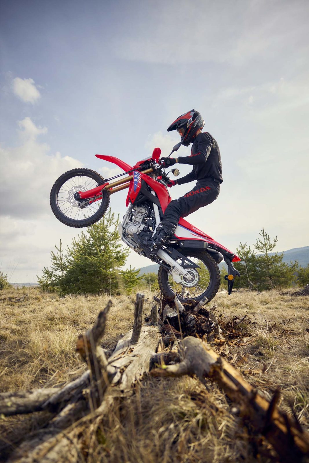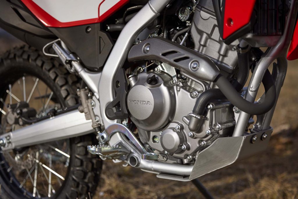 CRF 300 L este mai ușor cu 4 kg, datorită noului său cadru și brațului oscilant din aluminiu, pe care îl vei observa în momentul în care vei vira. Motorul monocilindric cu o capacitate mai mare produce o putere mai mare cu 2,6 CP cu un cuplu cu 4 Nm mai mare - pe care îl vei simți când rotești manșonul accelerației - și are acum Assist/Slipper Clutch. Garda la sol este mărită, iar poziția de condus este adaptată pentru un control complet, cu un rezervor și o șa subțiri, conturate pentru confort și acces ușor la sol.
