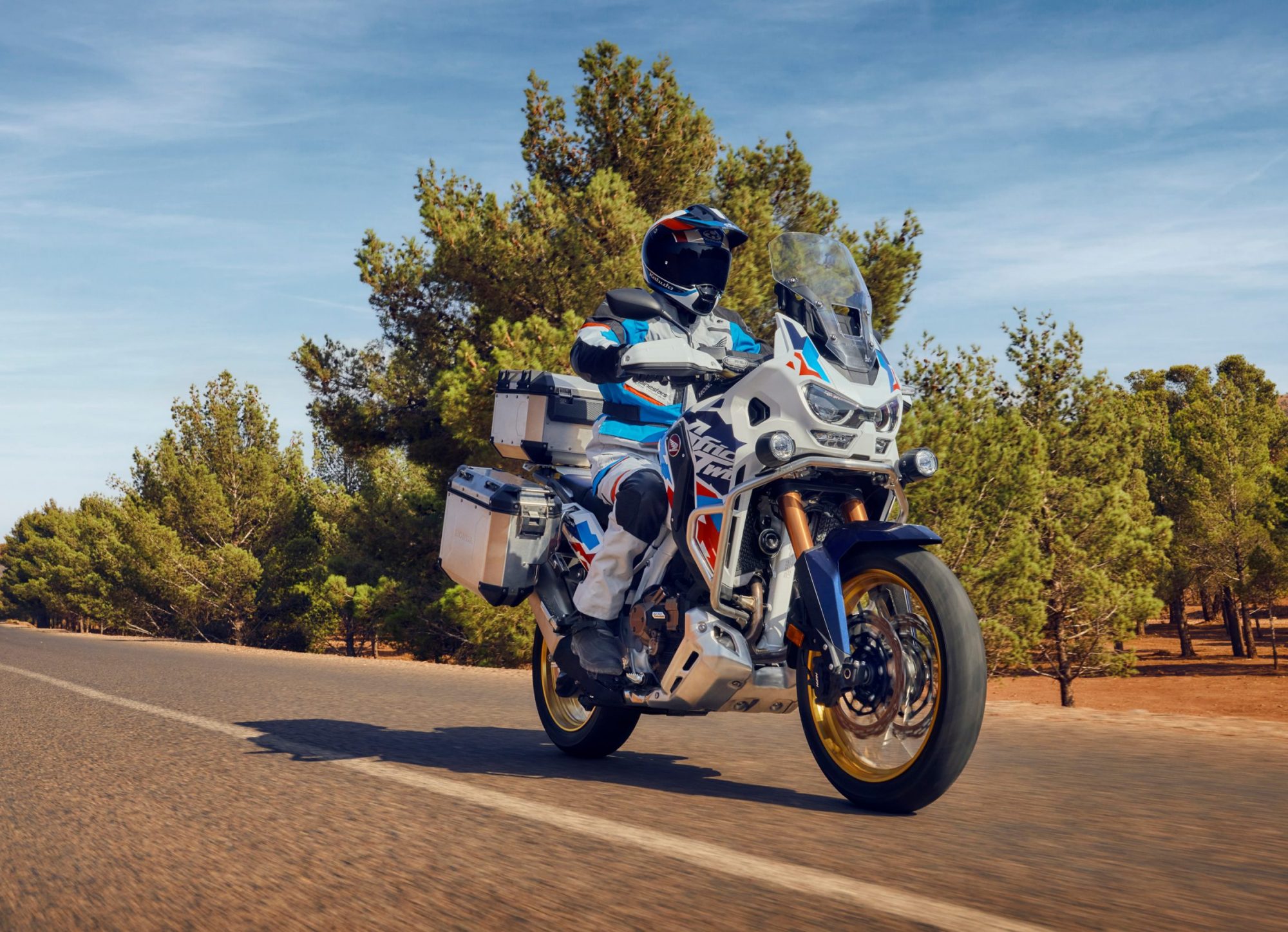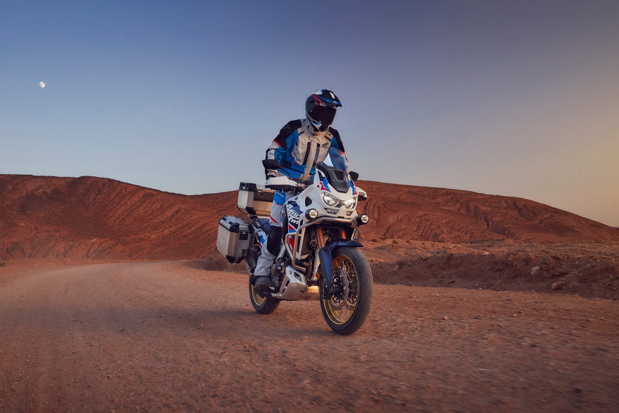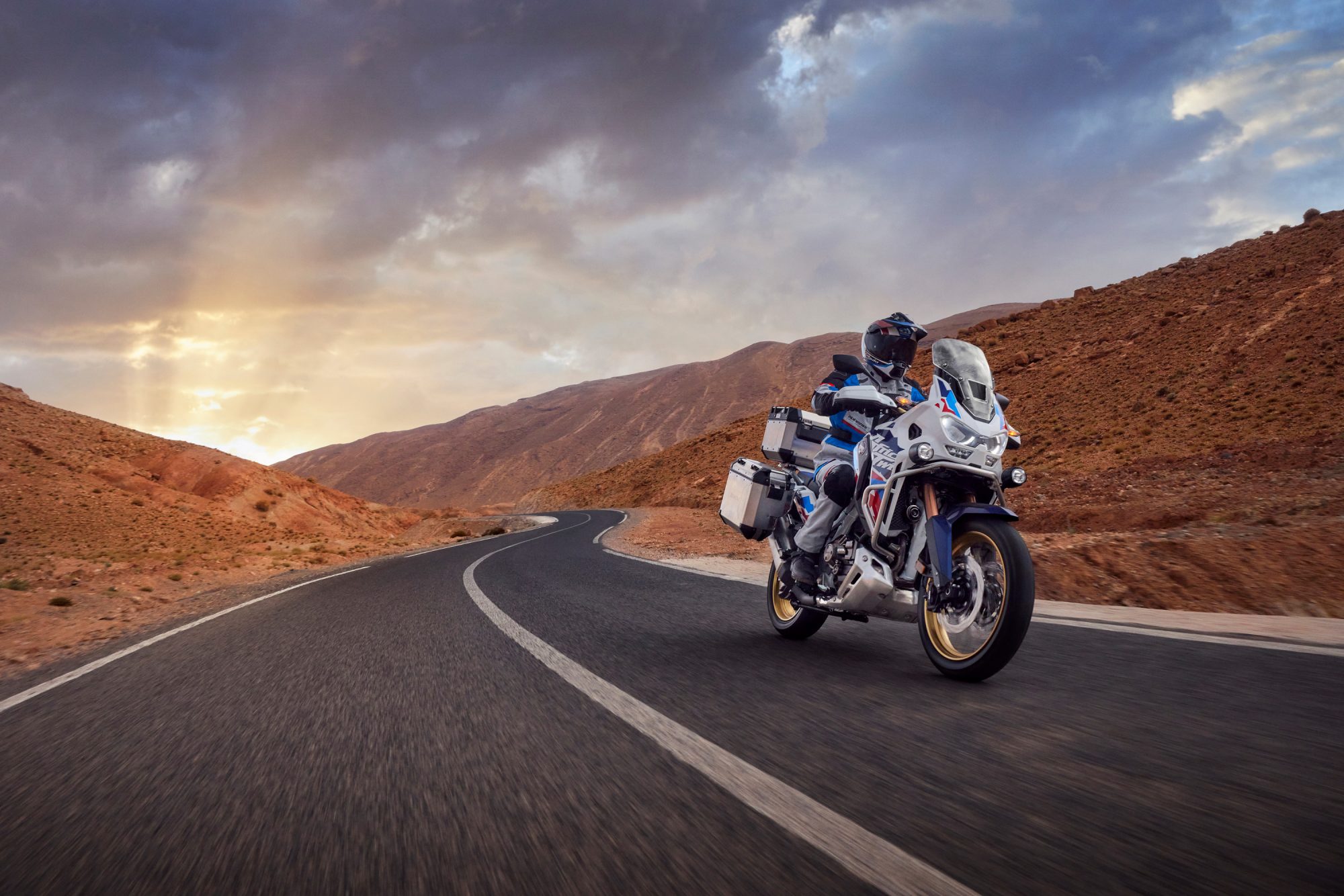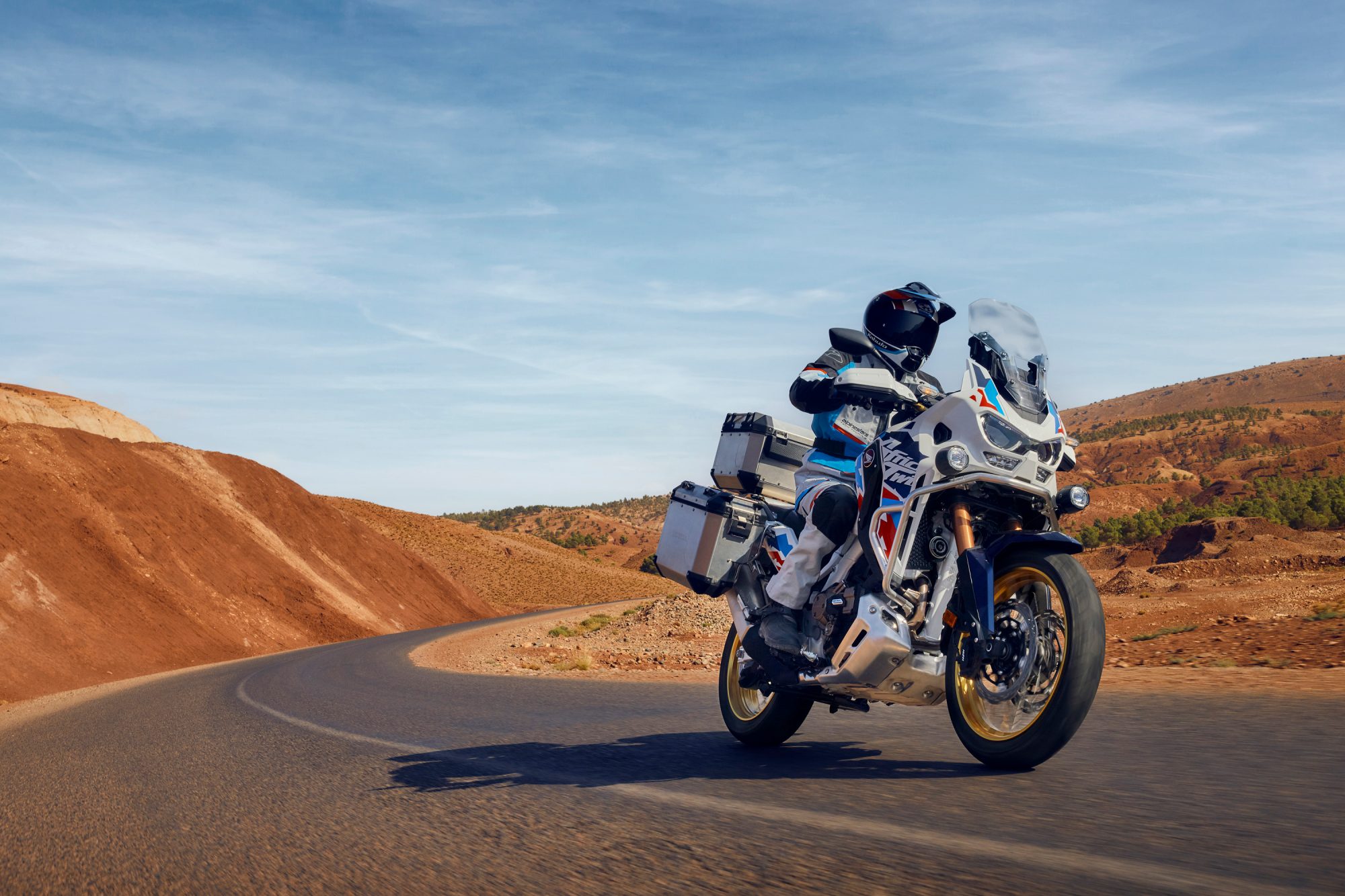 Privește către un nou orizont și către un nou cer senin. Pentru asta am construit noua Africa Twin Adventure Sports - pregătită să cutreiere lumea cu tehnologie avansată și dotări premium.