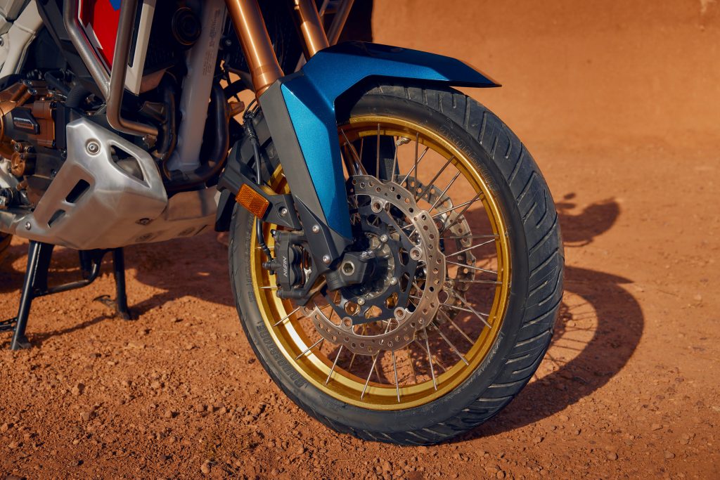 Noua Africa Twin Adventure Sports cu Suspensie Electronică (SHOWA EERA ™) iți oferă setările optime de suspensie pentru toate situațiile. Trei moduri prestabilite acoperă toate scenariile de mers, touring, în oraș sau off-road. Preîncărcarea amortizorului spate poate fi, de asemenea, ajustată electronic, în timp ce staționezi pentru a se potrivi cu încărcarea, indiferent dacă vei călători singur sau cu pasager și bagaje.