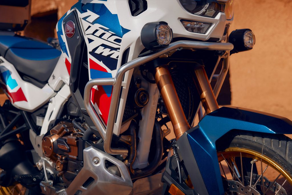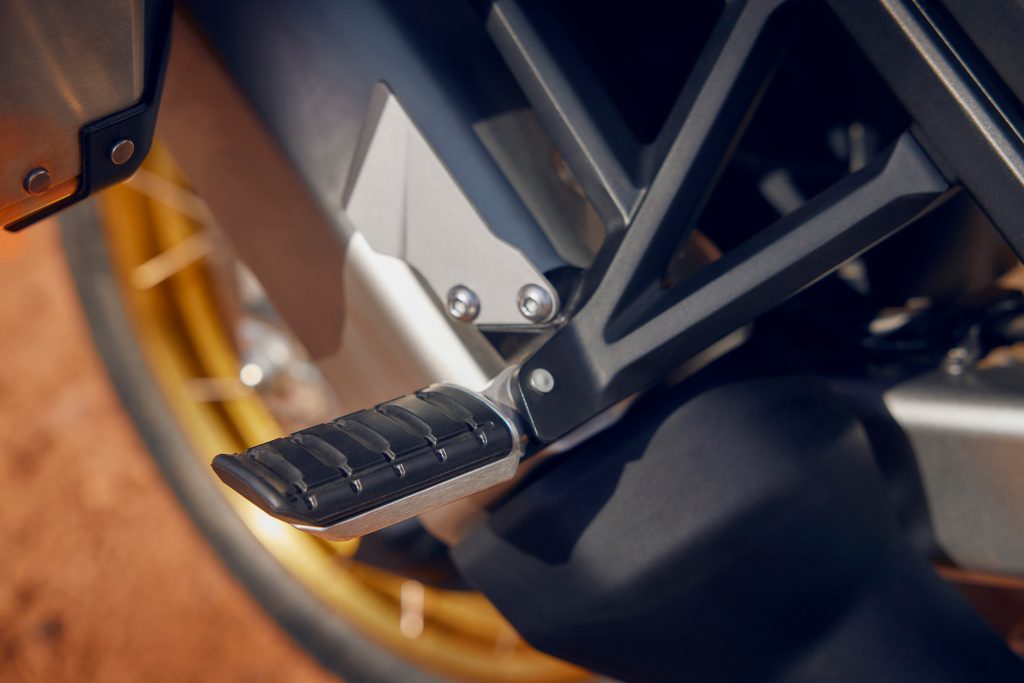 Când ești în șa toată ziua, detaliile pot fi foarte importante. La reproiectarea Africa Twin Adventure Sports, ne-am concentrat asupra confortului: rezervor mai mare, carenă frontală extinsă, parbriz reglabil pe înălțime. Și pentru a îmbunătăți siguranța, noile faruri dual LED oferă lumini de zi (DRL) și Cornering Lights. Mânerele încălzite îți oferă confort în timp ce cruise-control-ul te ajută să parcurgi mai ușor distanțele lungi. Există și o priză de încărcare ACC, iar roțile sunt tubeless.