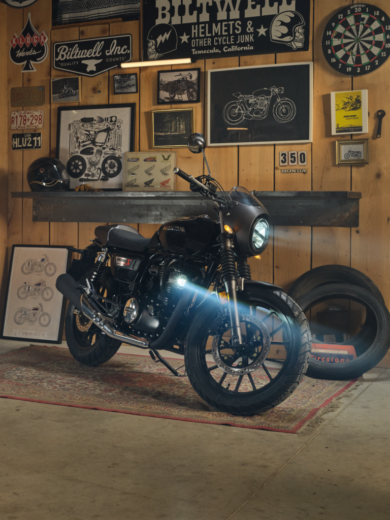 Iar totul începe cu senzația de conectare oferită de cadrul tubular semidublu din oțel, roțile de 19 și 17 inch și aderența excelentă a anvelopelor radiale late. Agil, precis și plăcut la condus, GB350S este creat pentru oraș și mai mult de atât.