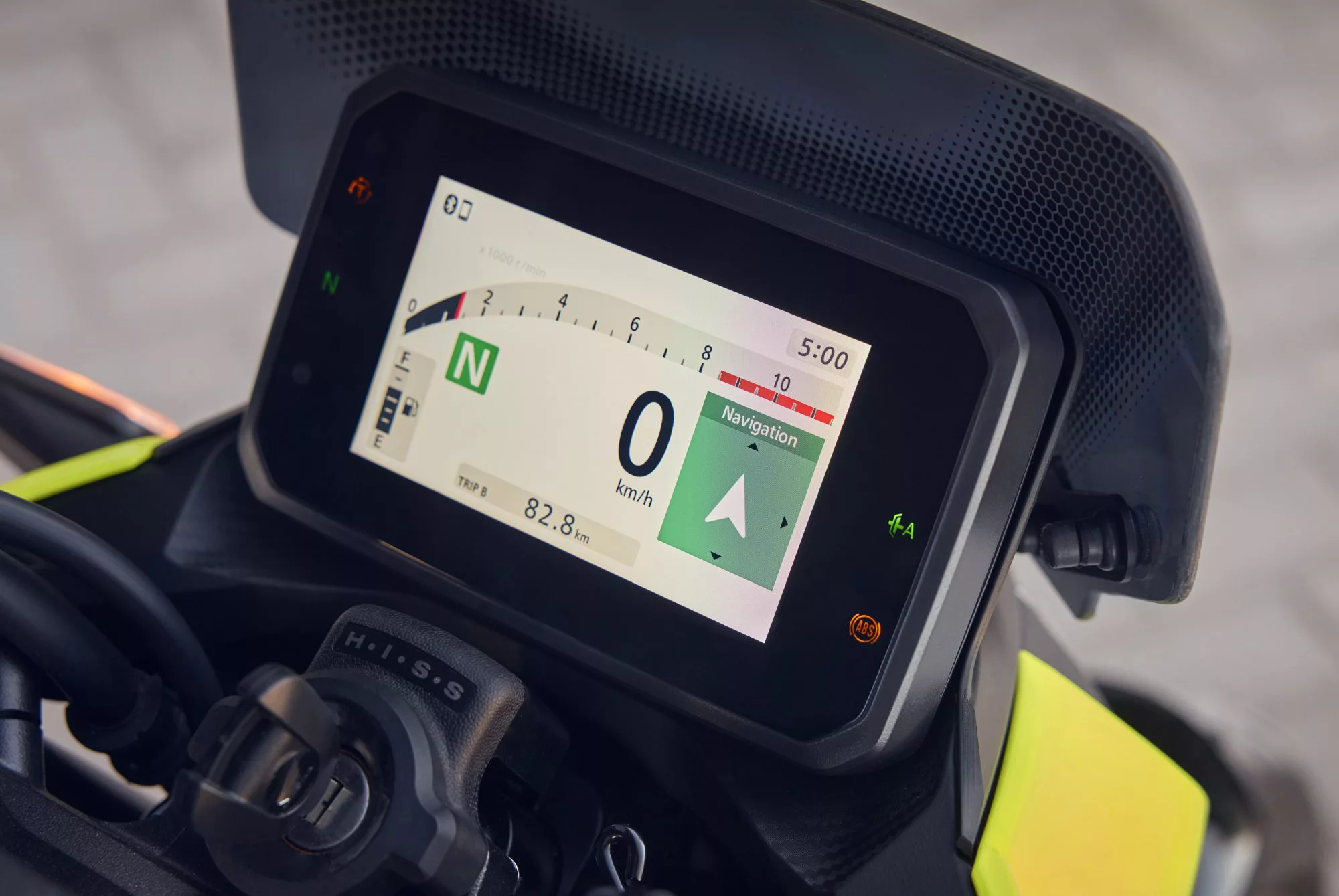 Noul Hornet 500 este echipat cu un display TFT de 5 inch ce vă oferă toate informatiile de care aveți nevoie în linia dumneavoastră vizuală iar luminile LED oferă atât o prezență puternică pe drum, cât și o vizibilitate sporită. În plus, noua furcă inversată Showa 41 mm SFF-BP (Big Piston) și suspensiile spate Pro-link Monoshock cu arcuri cu pre-încărcare în 5 stadii pot fi ajustate ușor pentru a beneficia de confort, indiferent de circumstanțe.